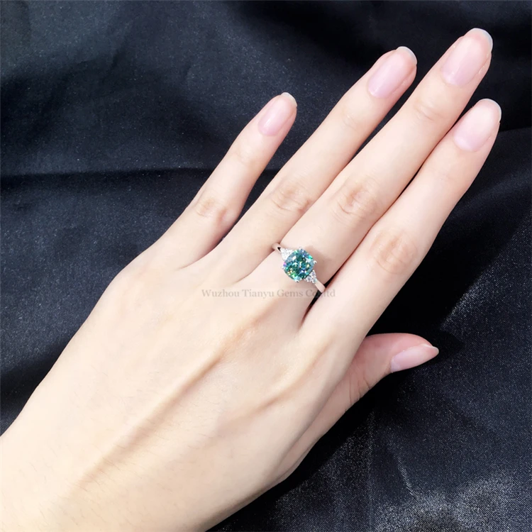 Tianyu драгоценные камни Подушка 7*8 мм синий зеленый белый Moissanite обручальное кольцо 1.5ct модные трендовые серебряные подарки ювелирные изделия с бриллиантами для женщин Размер драгоценного камня: 7*8 мм Металлический Вес (г): около 2,5 г Твердость: 9,25 могц Огонь (разочарование): 0,104 Цвет металла: белый цвет, цвет ниже, зеленый цвет Четкость: VS Форма: форма подушки
