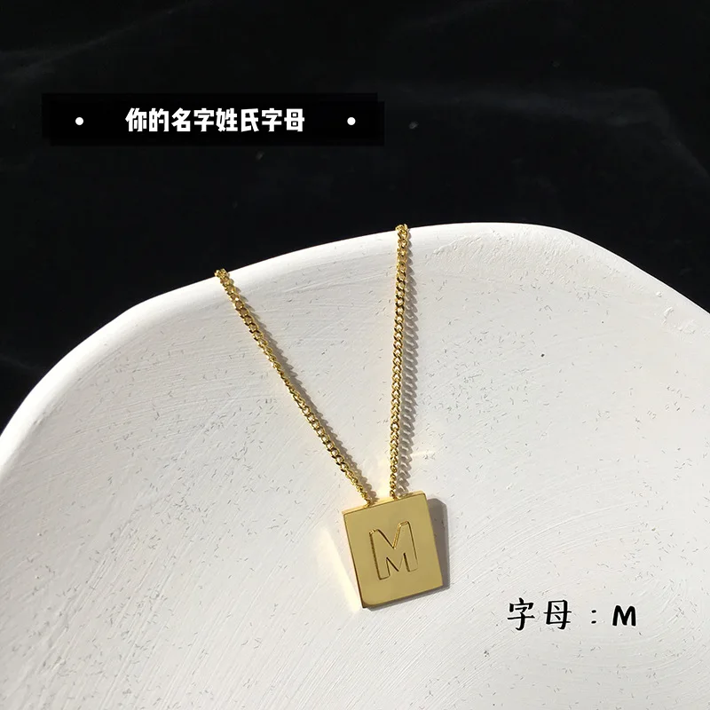 Европейское и американское Ins маленькое квадратное ожерелье с надписью