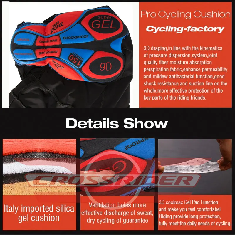 Спортивная версия для 3D резки 2. Джерси (полиэстер + спандекс) 3.: дышащий/быстросохнущий/удобный/не скатывается 4. Брюки (лайкра) 5. Амортизирующая подушка (9D гель)