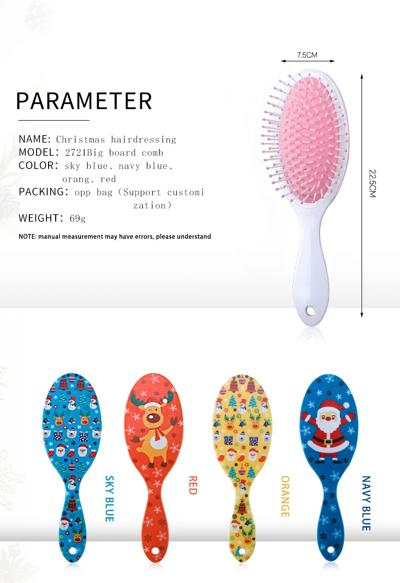 Расческа для волос с рисунком рождественского Санта Клауса, лося, уход за волосами, массажная подушка безопасности, щетка для волос, аксессуары для парикмахерских, инструменты для укладки, горячая распродажа, 2721