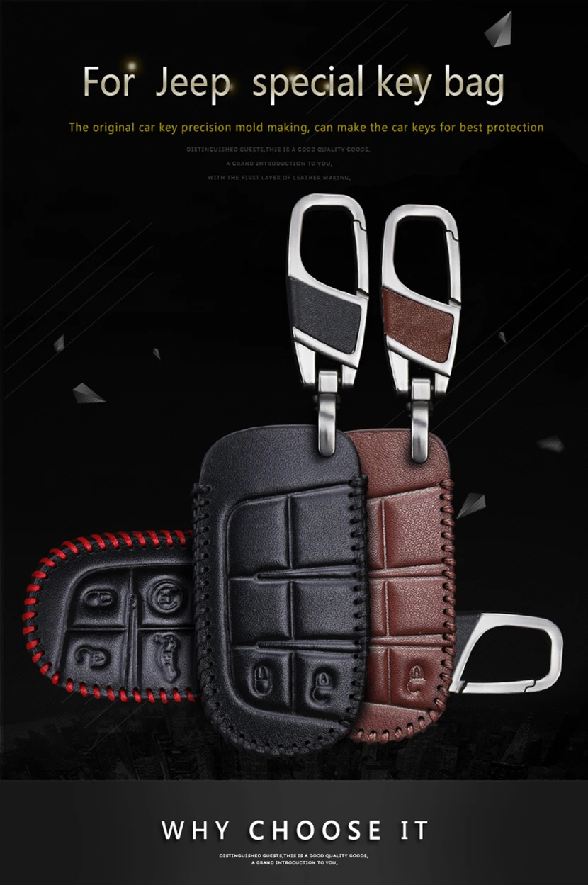 Кожаный чехол для автомобильного ключа для Jeep Liberty Grand Cherokee Wk2 Compass Renegade Wrangler JL патриот, брелок, аксессуары