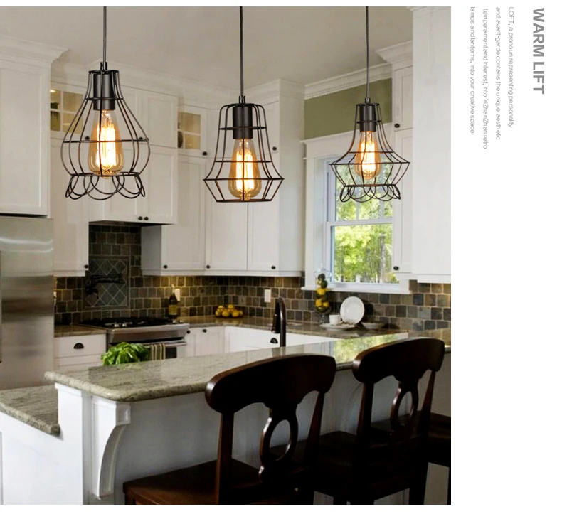 【Упрощенная Подвесная лампа 】 Эта металлическая проволочная клетка, дизайн, подвесная клетка, лампа, встроенная в любой винтажный, современный, деревенский, промышленный декор, который отлично подходит для вашей кухни, столовой, гостиной, спальни, бара, коридор, фермерский дом и т. Д.