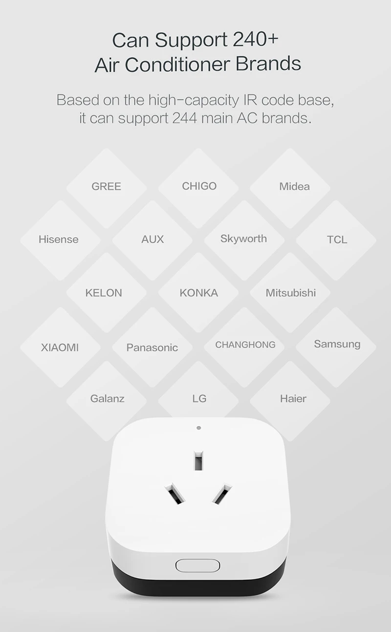Основанный на технологии беспроводной передачи Wi-Fi и ZigBee 3,0, Компаньон по кондиционированию Aqara работает с вашим кондиционером через инфракрасные сигналы. Это центр управления домашними автоматическими устройствами ZigBee, который может работать со всеми датчиками и контроллерами ZigBee для реализации нескольких функций.