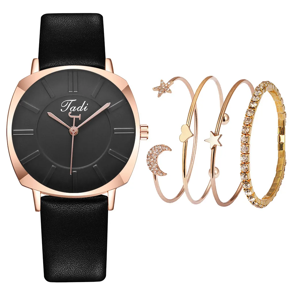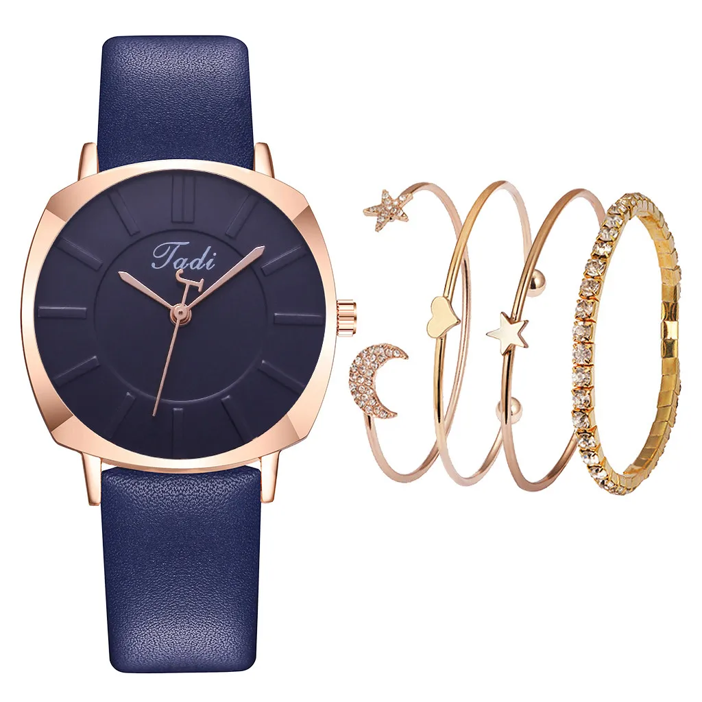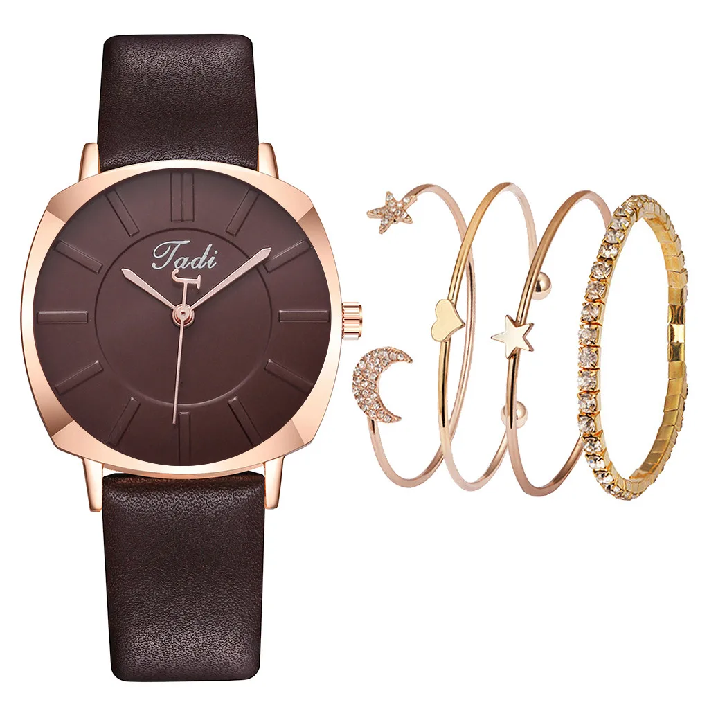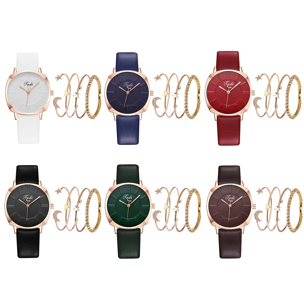 Женские кварцевые часы с кожаным ремешком, Набор браслетов, новый стиль, модный элегантный темперамент, много цветов, благородный 50 *
