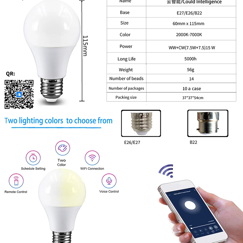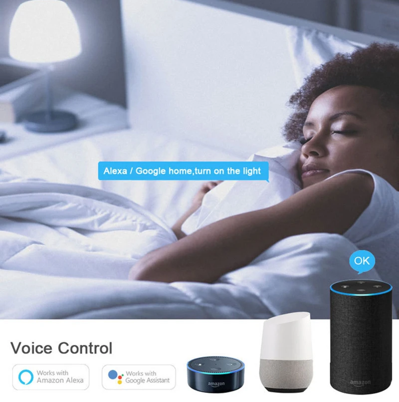 And control these smart bulbs via your voice with Amazon Alexa, Google Assistant, Siri and IFTTT. Just give a command to turn on/off or dim/brighten the lamp. Voice control function.