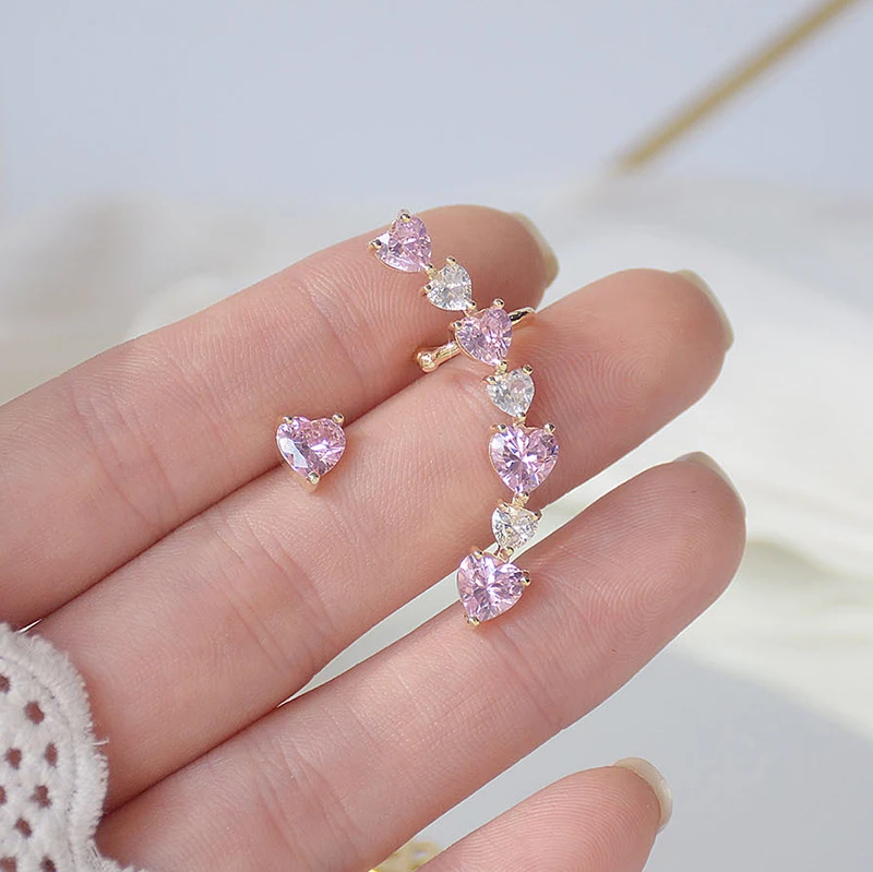 14K настоящее золото покрытием CZ кубический циркон розовое сердце клип серьги для женщин нежные ювелирные изделия хрустальные серьги манжеты