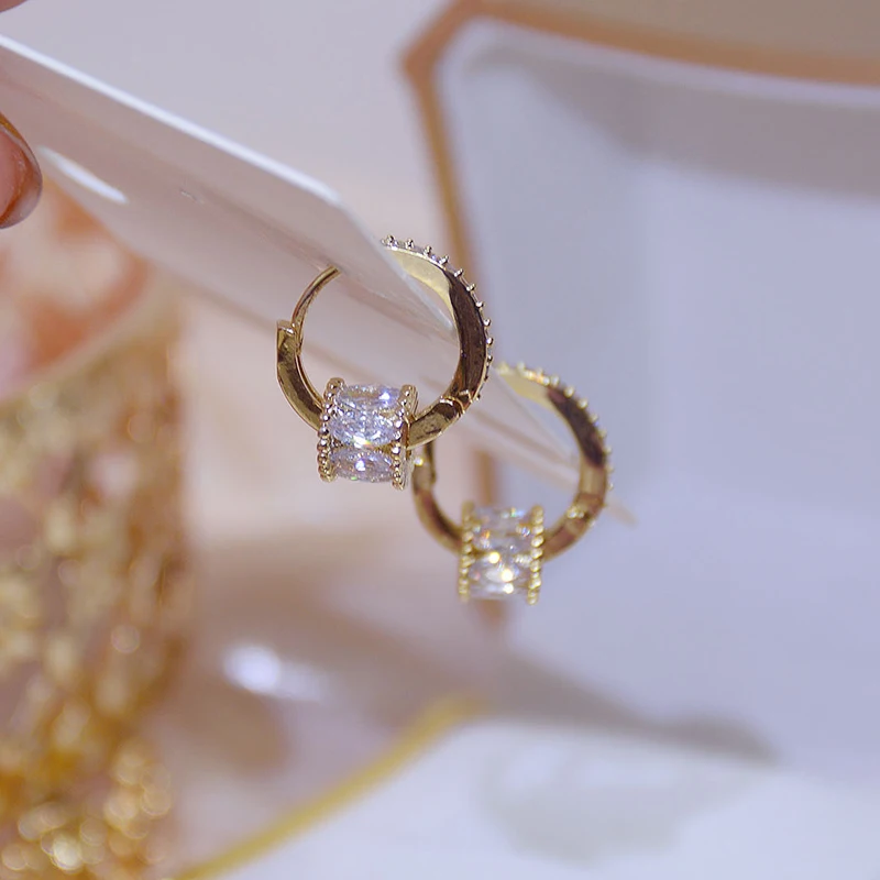 Японские и корейские Изящные Ювелирные изделия 14 к настоящее золото AAA циркон геометрические серьги-гвоздики для женщин Роскошные серьги с бриллиантами