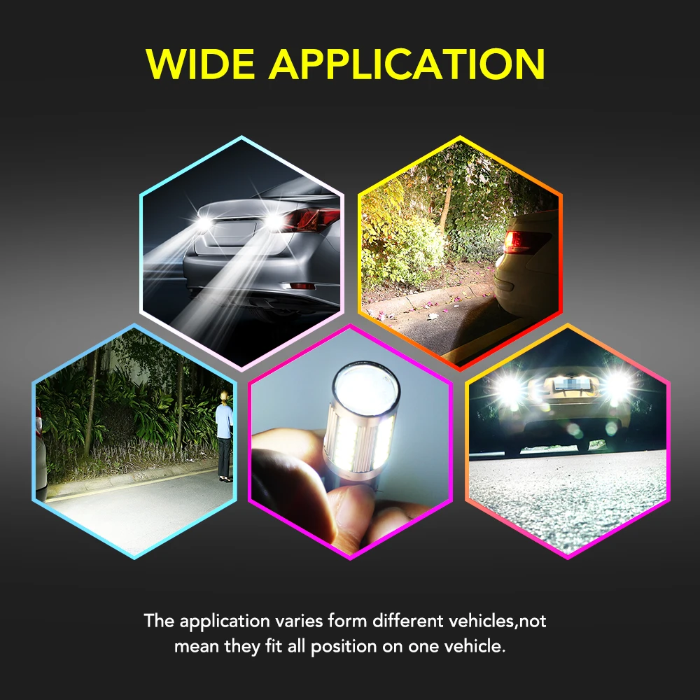 1.Works for backup reverse lights,tail bulbs,brake lights, DRL,daytime running lights,turn signal,etc. 2. High power 33PCS 5730 LED chips,which will provide a perfect beam pattern,high light output,low power consumption. 3.European and newest vehicle equipped with CAN-BUS system may require load resistors to bypass the error codes/flicker issue when intall as turn signal and brake lights.