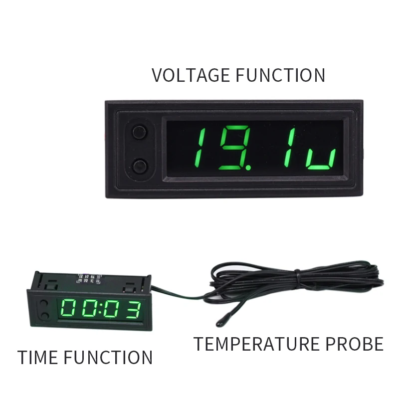 <3 в 1 дизайн: многофункциональный электронный часовой модуль, время, внутренняя и внешняя температура, напряжение на одном.