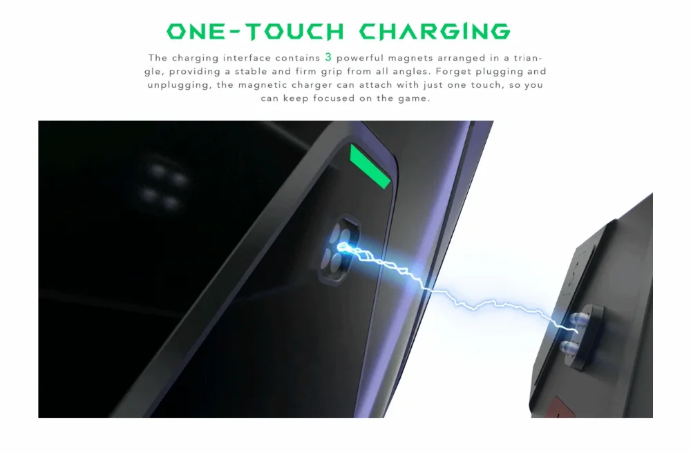 Наслаждайтесь плавными переходами между воспроизведением и зарядкой с помощью этого футуристического устройства. Это зарядное устройство магнитно крепится на заднюю часть игрового телефона Black Shark полностью из-за аксессуаров и ваших рук.