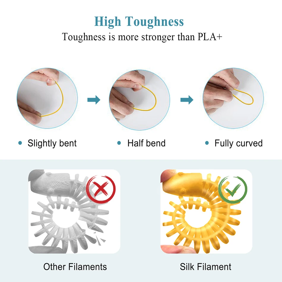 Шелковая нить разлагается, нетоксичный материал, близкий к шелковому эффекту, прочность более чем в 50 раз выше пла. Аккуратная намотка нити плавно, без запутывания. 100% без пузырьковой 3d печати нити.