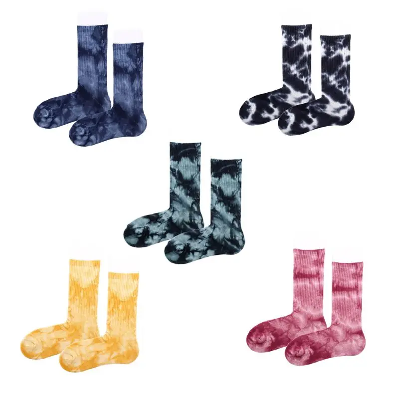 Стиль Харадзюку хип-хоп, ребристые трикотажные эластичные манжеты, цветная печать на галстуке, носки-трубы средней высоты, 5 цветов на выбор,