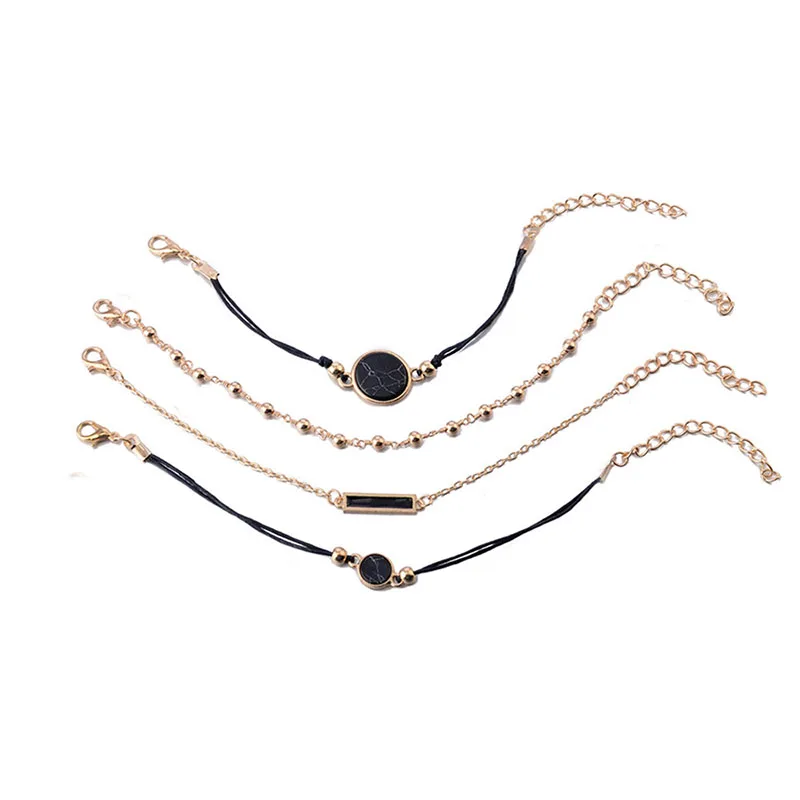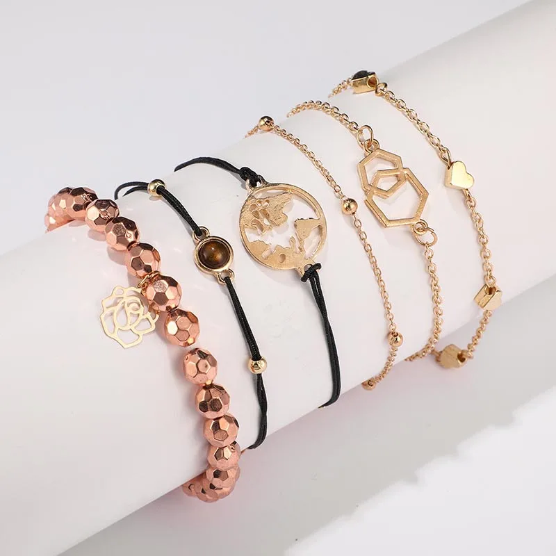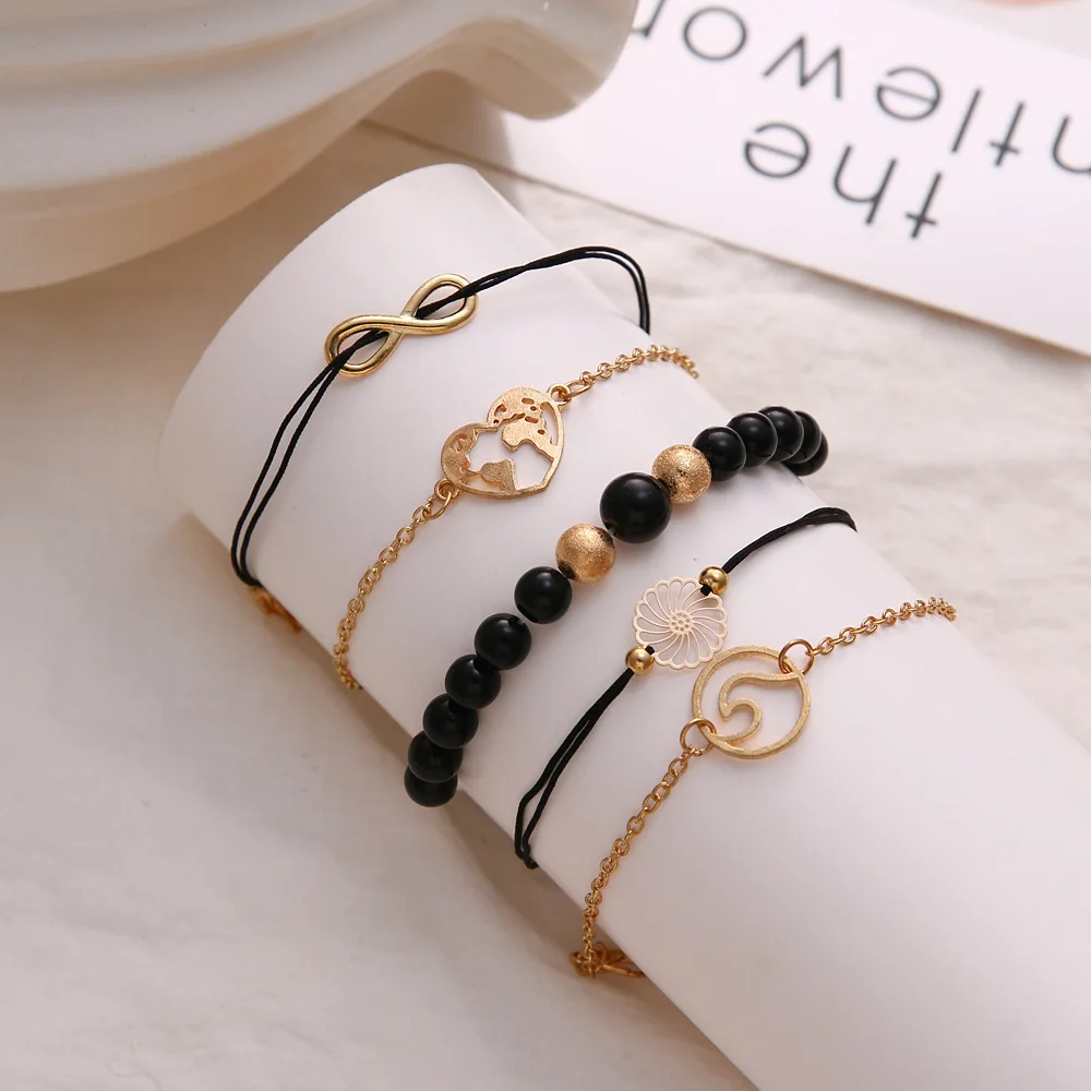5 шт./компл., набор шармов с черными бусинами для женщин, геометрические шестиугольники, черные монетки, очаровательные браслеты, модные браслеты для женщин 2020