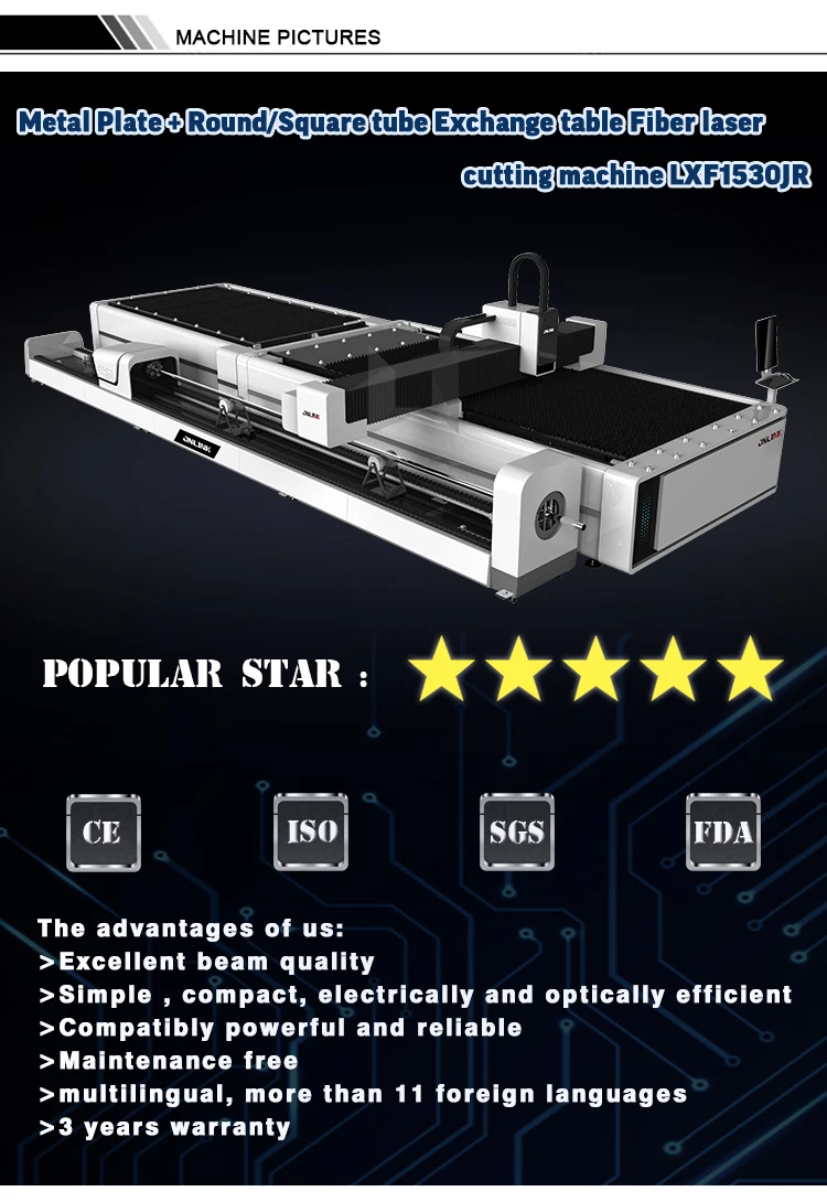 1500 Вт 2200 Вт 3300 Вт 4000 Вт 6000 Вт 8000 Вт 1200 Вт 25000 Вт Высокая мощность металлическая пластина + металлическая трубка/труба волокна лазерной резки LXF3015JR |