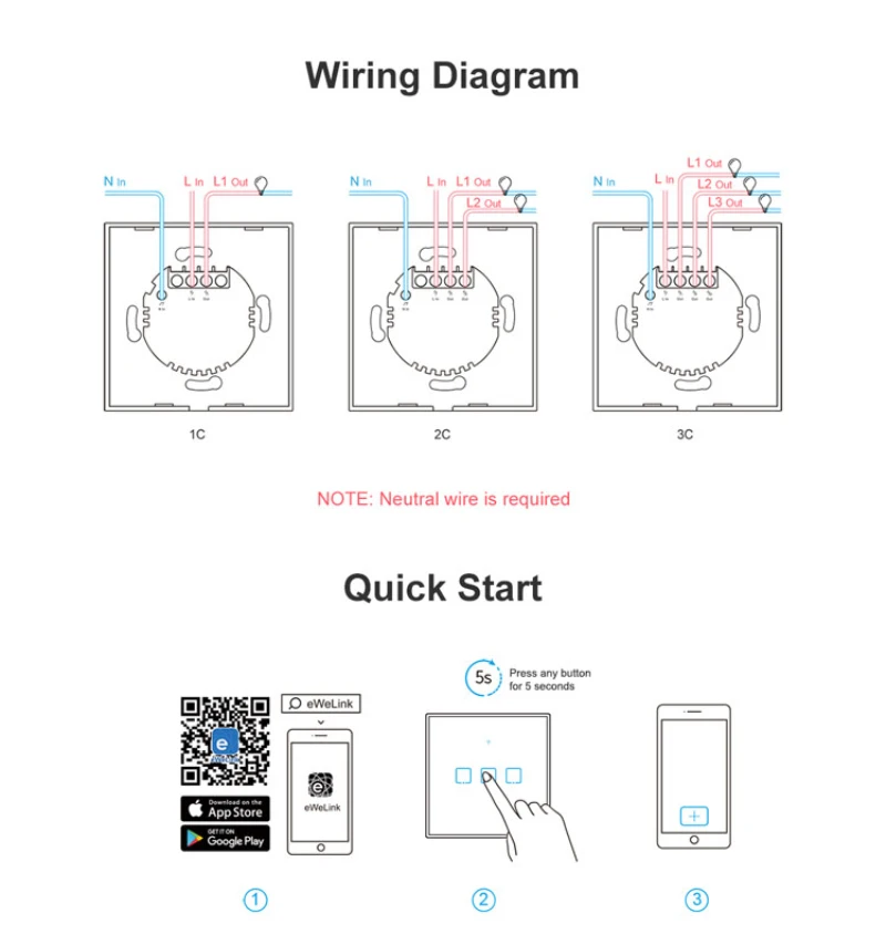 Output: AC 100-240V 50/60Hz, 2A/Gang, 6A/Total Max