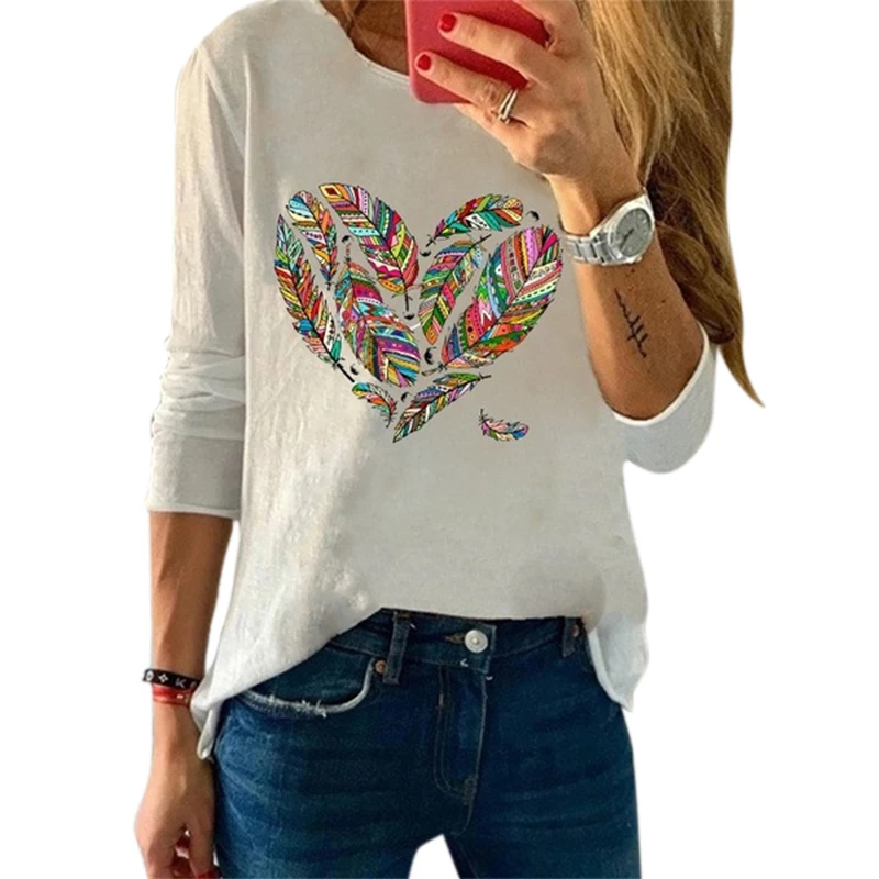 Женская футболка VICABO, летняя модная футболка с принтом сердца и длинным рукавом, повседневная женская футболка размера плюсUS $17,06 /