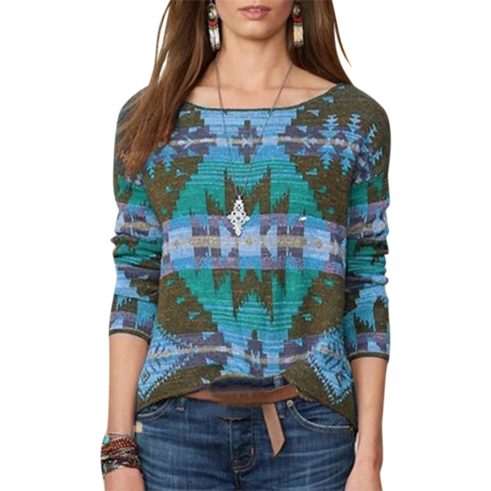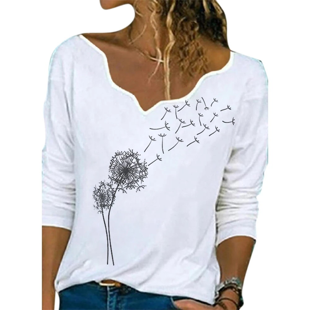 Осенняя винтажная женская футболка с принтом, Топ с длинным рукавом размера плюс, круглый вырез, длинный рукав, футболка, топ с принтом, пуловеры, женская одеждаUS $16,18 /