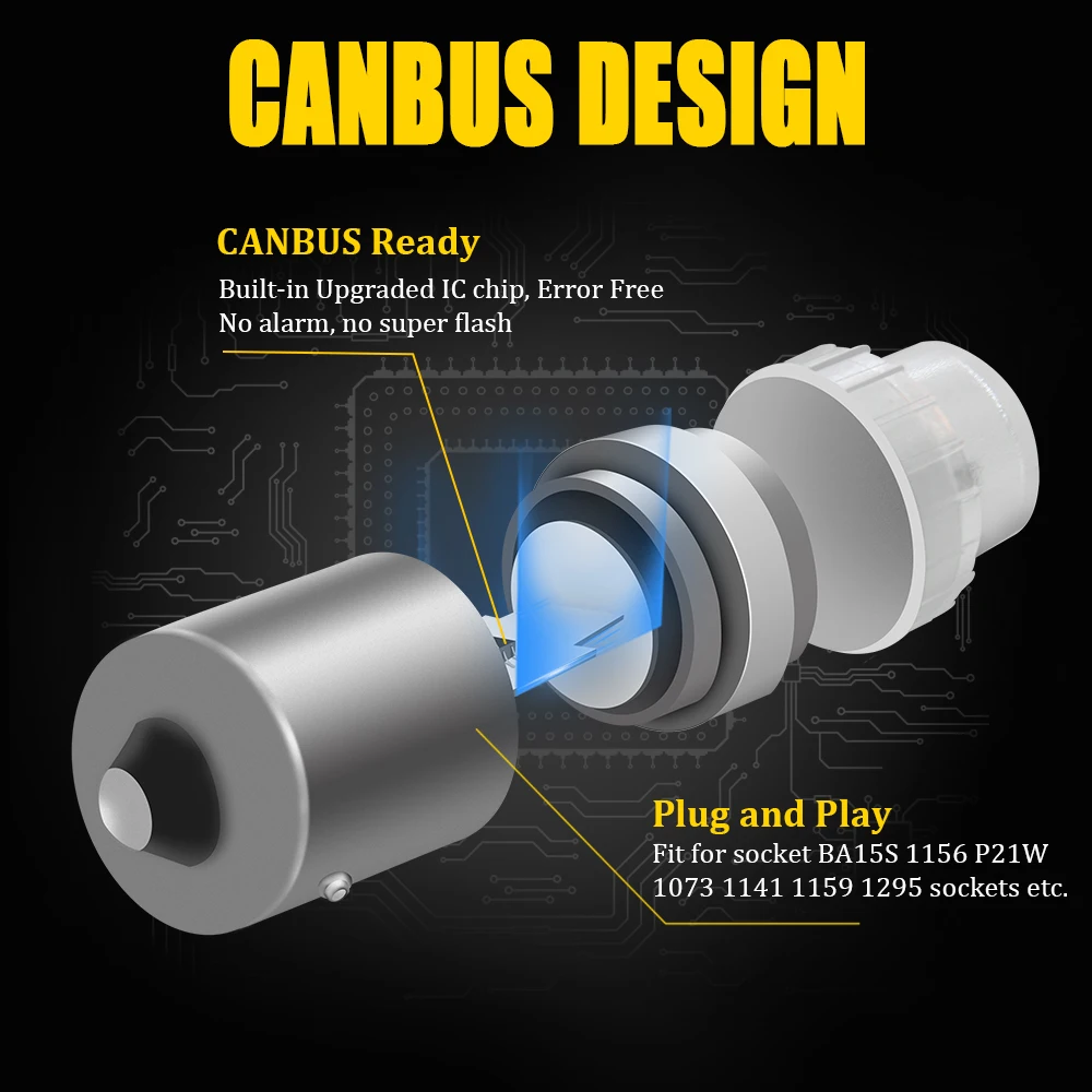 Разъем 1: 1156 BA15S P21W светодиодный (рекомендуется использовать резервные фары заднего хода или дневные ходовые огни) Разъем 2: T15 W16W 912 светодиодный (рекомендуется использовать резервные фары заднего хода) Посылка: светодиодный светильник из 2 предметов
