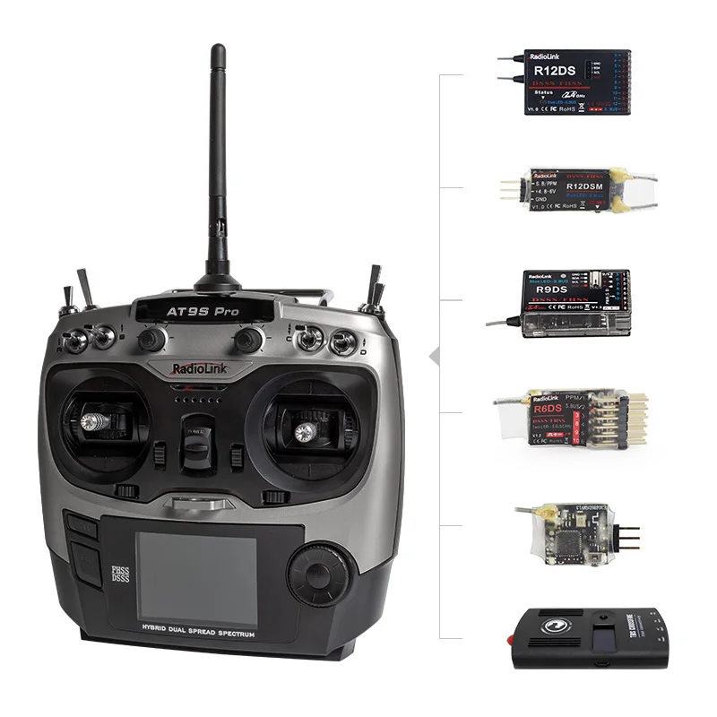 Характеристики AT9S PRO: Отличная защита от помех: Радиоуправляемый передатчик с DSSS и FHSS работает синхронно, чтобы сохранить отличную производительность от помех, только 3 мс for10 каналов ответа.Поддерживаемый протокол CRSF: на основе уникальной коммуникационной технологии RadioLink DSSS и FHSS добавлен протокол CRSF от Blacksheep. Совместим с модулем TBS Crossfire 915.Совместимость с SBUS, PPM, PWM и CRSF: с DSSS и FHSS протокол, SBUS, PPM и PWM может работать одновременно для бесшовного контроля пользователя. С протоколом CRSF.Информация в режиме реального времени: когда PRM-03 модуль работает с полетным контроллером, модельным напряжением, скоростью, подъемом, дроссельной заслонкой, долготой, широтой, высотой, GPS, RSSI, режимом полета, yaw, roll, шаг и расстояние отображаются на ЖК-экране.Адаптируется к большинству типов самолетов: легко понять Пользовательское программное обеспечение делает быструю работу по замене типов самолетов, поворотных крыльев, фиксированных крыльев, планеров, мультикоптеров, автомобилей, лодок, роботов.Обновление на основе USB: передатчик легко обновляется с помощью последней прошивки с помощью usb-кабеля для подключения ПК.Система защиты напряжения: Программное обеспечение защиты напряжения RadioLink обеспечивает защиту важных компонентов от обратной полярности.Поддержка универсальных аккумуляторов: JST 2Pin разъем поддерживает батареи нескольких типов s: 8 шт. AA или 2s-4s LiPo батареи. (Батарейки в комплект не входят) аккумулятор liPo 3s 1800mAh может работать более 12 часов.