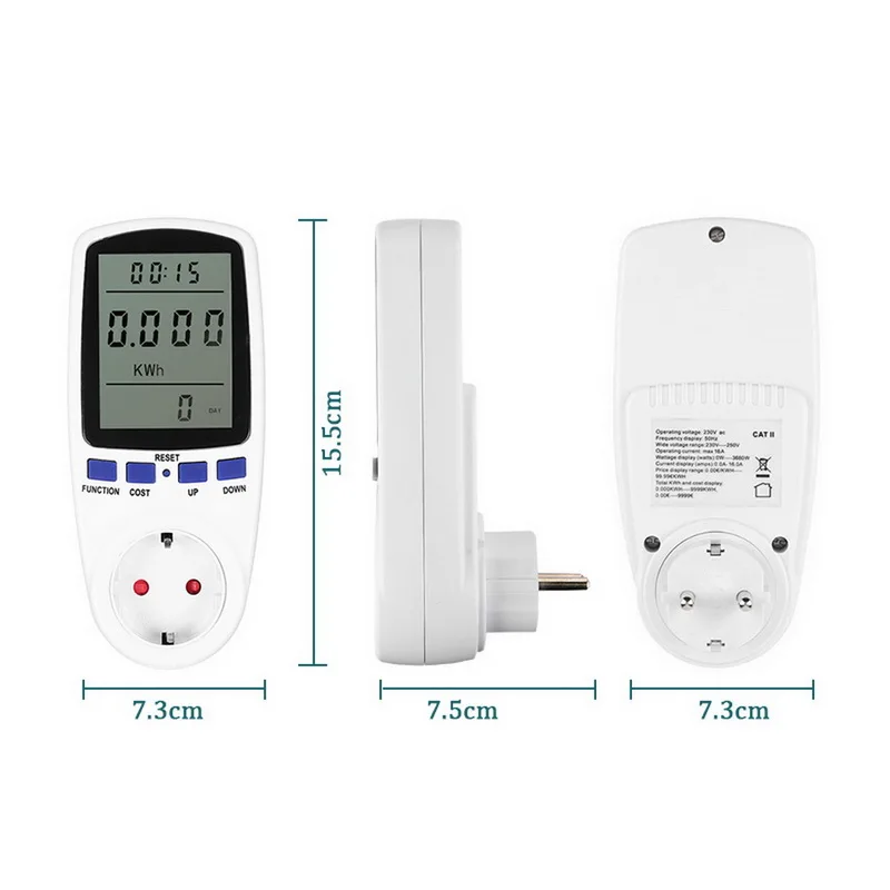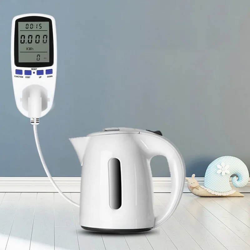 <Различные параметры: Мощность (Вт), напряжение, ампер, идеально подходит для контроля потребления энергии бытовой техники.