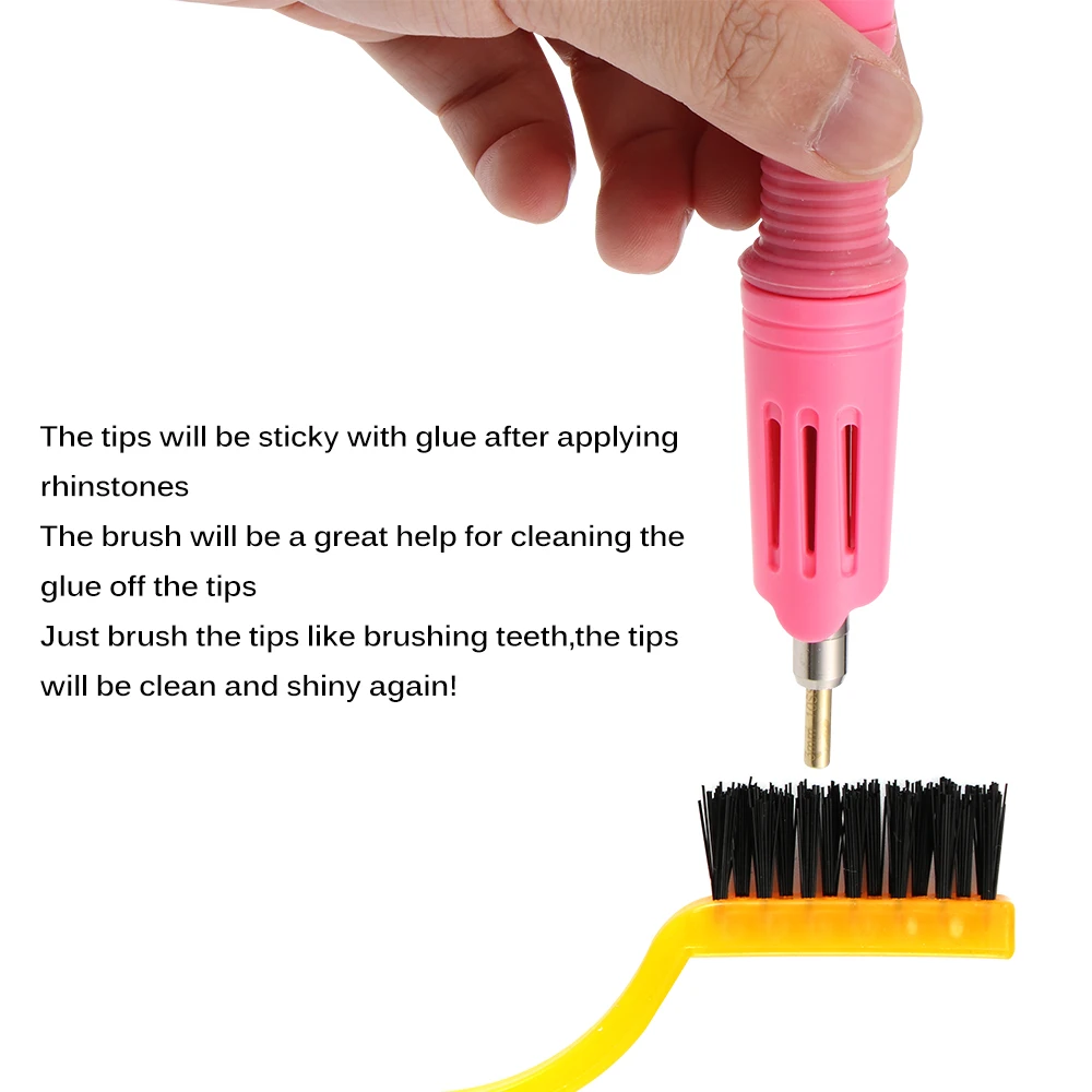 1 чистящая щетка: после нанесения Стразы кончики будут липкими с помощью клея. Щетка станет отличным подспорьем для очистки клея от кончиков. Просто почистите кончики, такие как чистка зубов, кончики снова будут чистыми и блестящими!