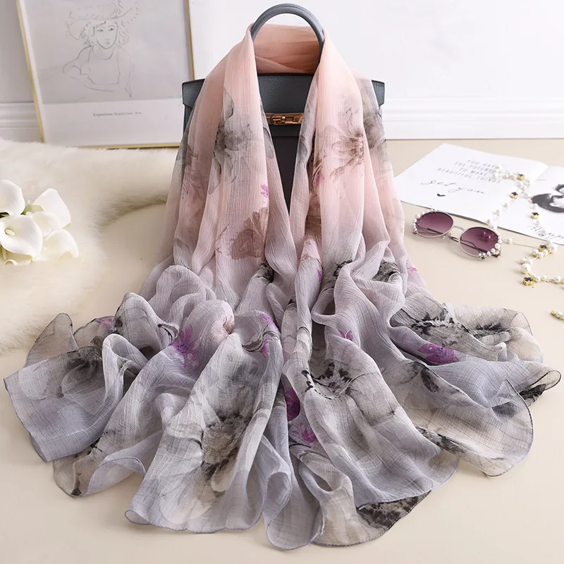 Роскошный женский шелковый шарф с принтом, женские хиджабы, шарфы, летняя женская шаль, пляжные накидки, шарфы, повязка на голову