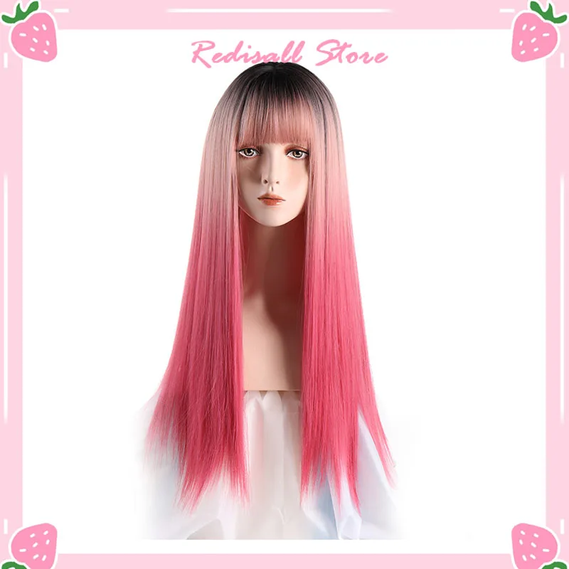 Парик Лолиты в стиле Харадзюку длинные прямые челки из оранжевых волос милая