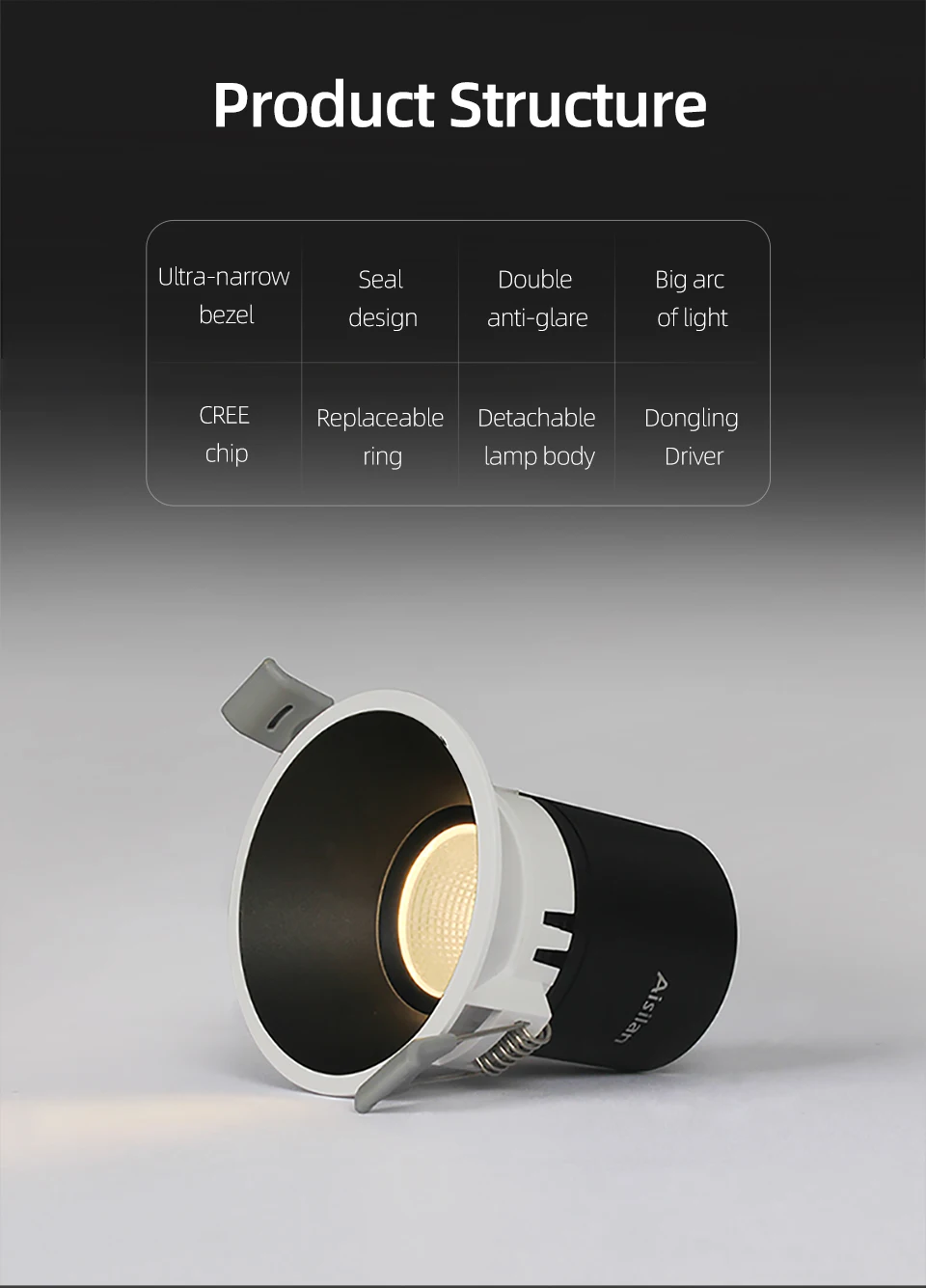 Ультра-узкий Безель уплотнение дизайн двойной антибликовый большой дуга светильник Сменное кольцо со съемным корпусом лампы CREE chip Dongling Driver