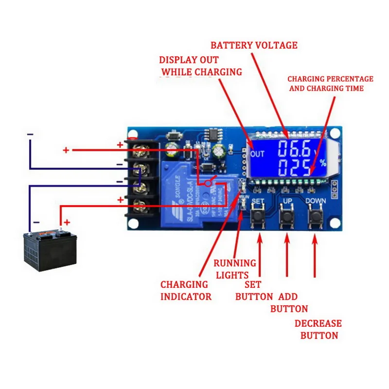 <Применение: настраиваемый контроллер зарядки аккумулятора для DC6-60V литиевой батареи.