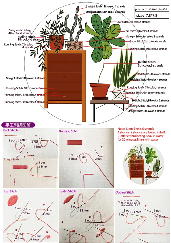 Поставляется с ручной вышивкой и проиллюстрированными инструкциями