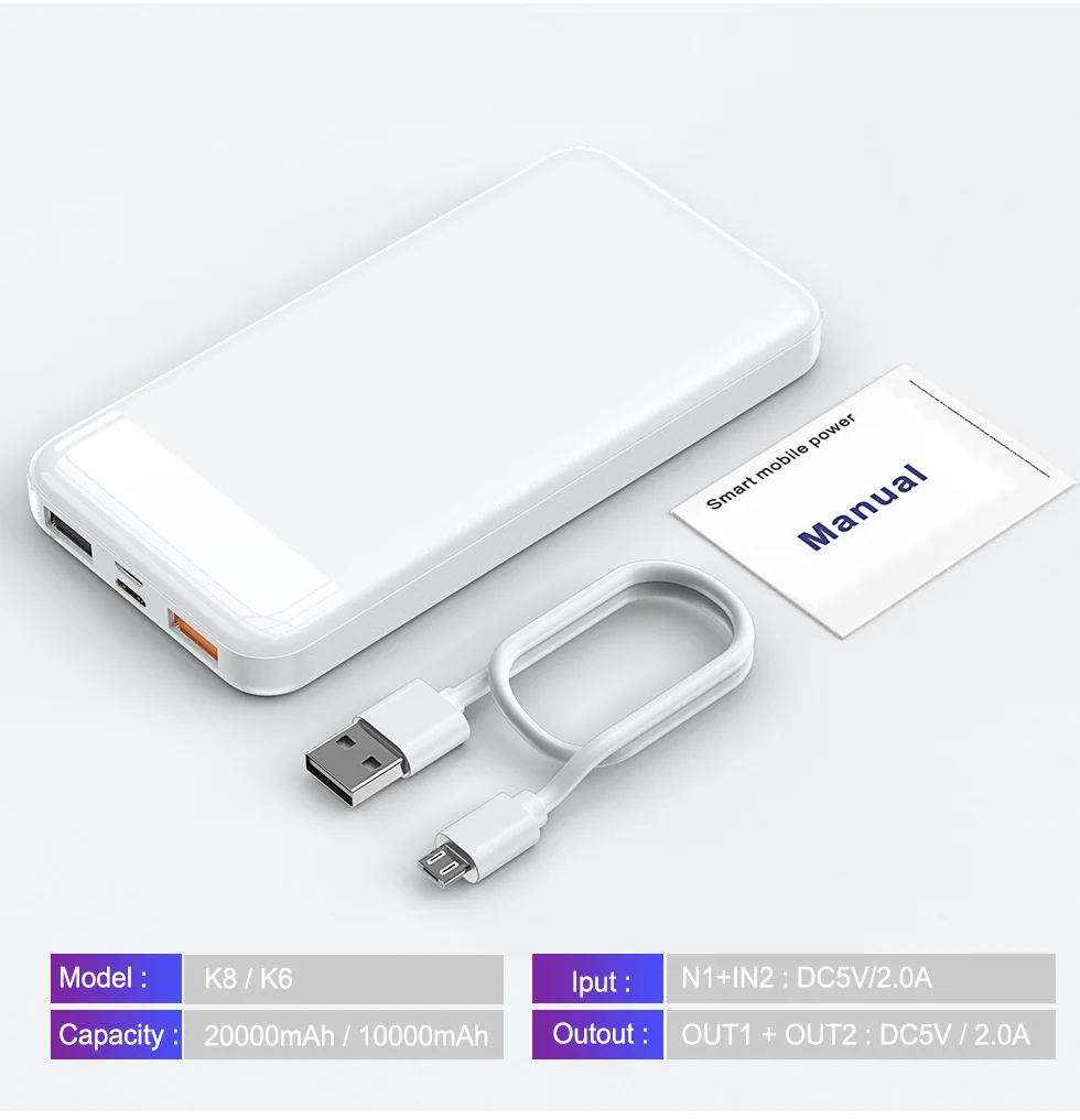 Внешний аккумулятор 20000 мАч портативное зарядное устройство внешний с