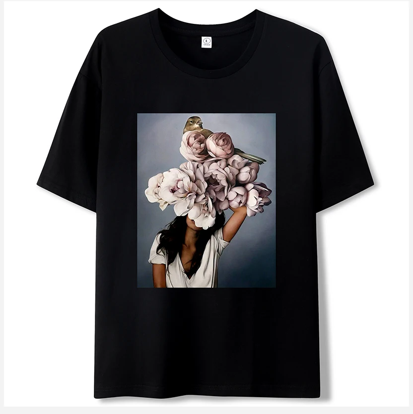 Модная пикантная женская футболка с цветочным рисунком для художественной фотосъемки, Женская Эстетическая хлопковая футболка с коротким рукавом Kawaii