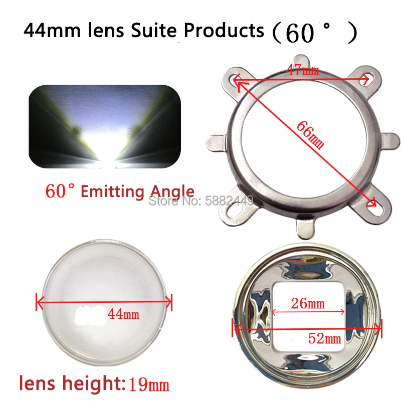 44 мм выпуклая линза Оптический акриловый PMMA светодиодный объектив 60 градусов 120 градусов + 52 мм Отражатель + фиксированный стальной кронштейн для 20 ~ 100 Вт Светодиодный светильник
