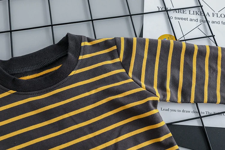 Весенне-Осенняя детская модная одежда футболка в полоску с рисунком для маленьких мальчиков и девочек, штаны одежда для малышей Повседневный Спортивный костюм для От 0 до 4 лет