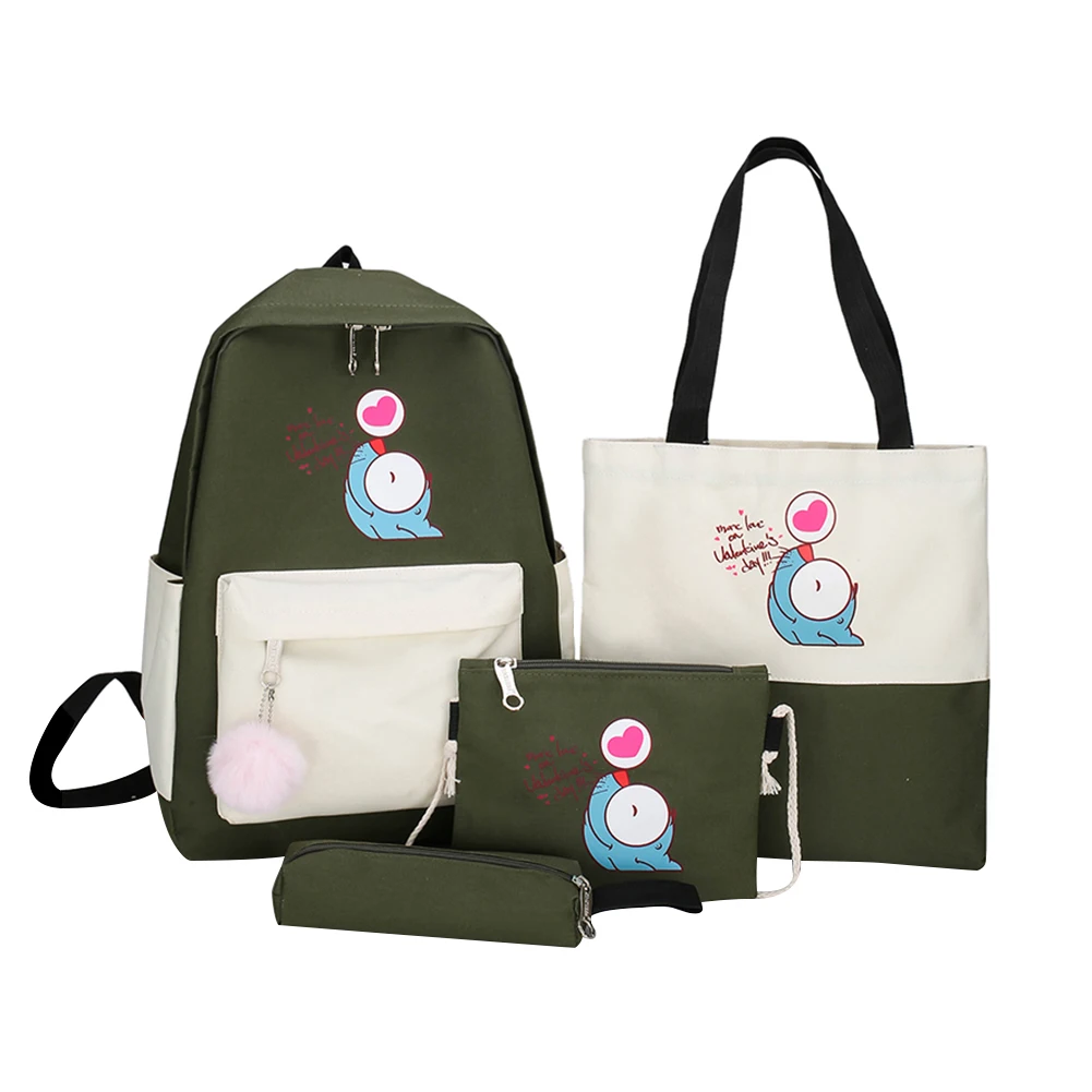 Характеристика: Милый мультяшный рисунок; Популярная расцветка; С помпоном для волос. Стильный Холщовый материал. Спецификация: Материал: холст Подкладка: полиэстер (внутренняя подкладка случайный цвет) Размер: 40*30*13 см/15,74*11,8*5,12 дюймов Использование: сумка через плечо, сумка через плечо, рюкзак, сумка-тоут Цвет: желтый, розовый, армейский зеленый, черный Технология материала: мягкая поверхность Стиль: Повседневный и универсальный, милый рисунок Советы: регулируемый плечевой ремень. Примечание: 1. Из-за различных настроек монитора и светильник эффект, фактический цвет элемента может быть s светильник ly отличается от цвета, представленного на снимках. Спасибо! 2. Возможны отклонения в 1-3 см вследствие измерений вручную. 1 х сумка через плечо 1 X сумка-мессенджер 1 X Чехол-карандаш