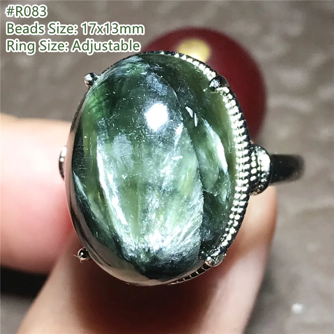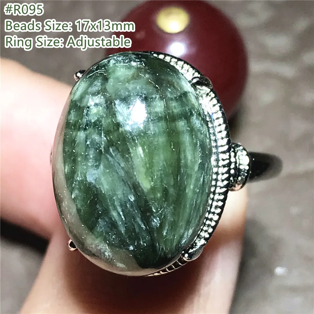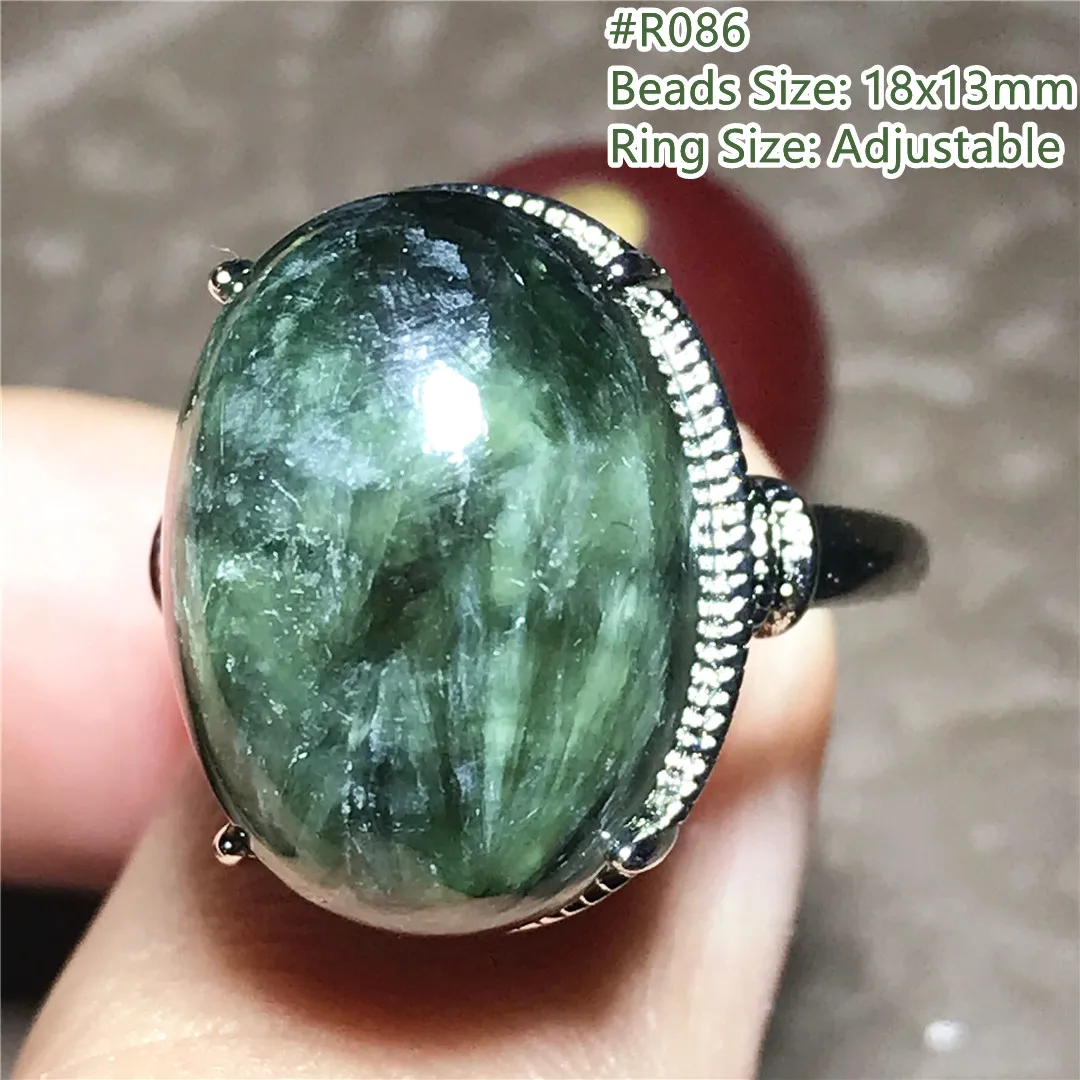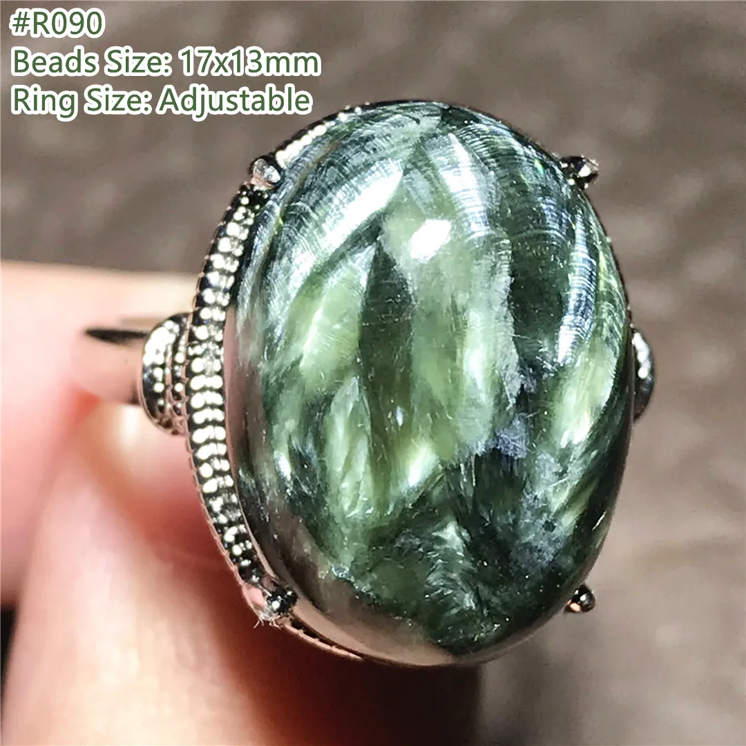 Natural Green Seraphinite Ring Jewelry For Woman Lady Man Gift Silver Healing Wealth Crystal Beads Stone Adjustable Ring AAAAA Drop Shipping