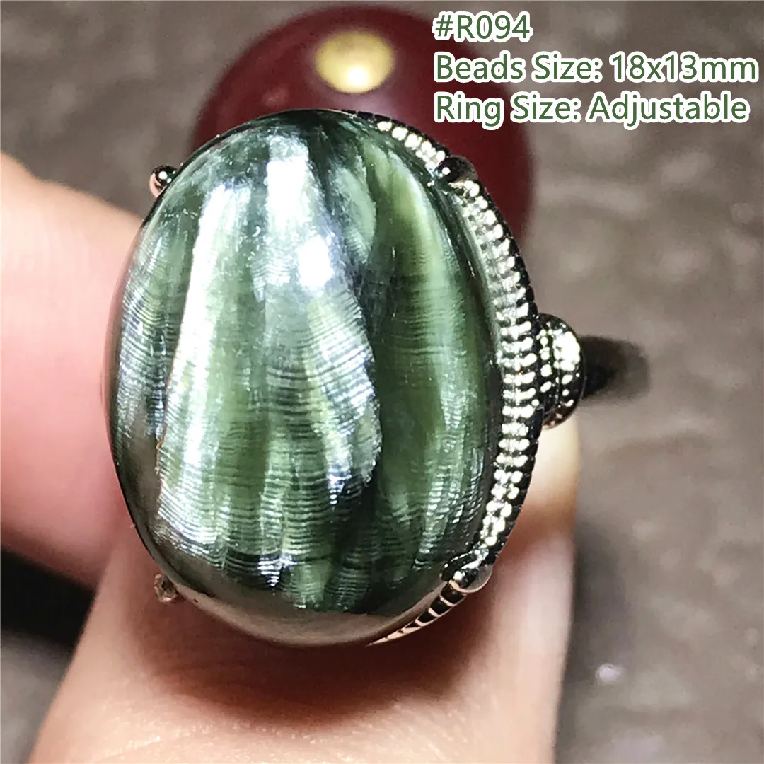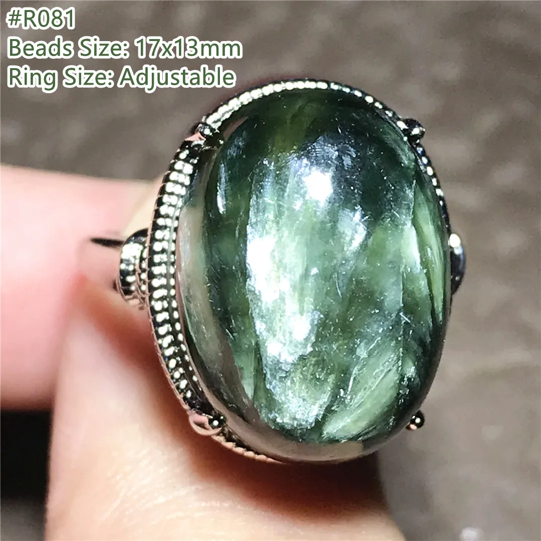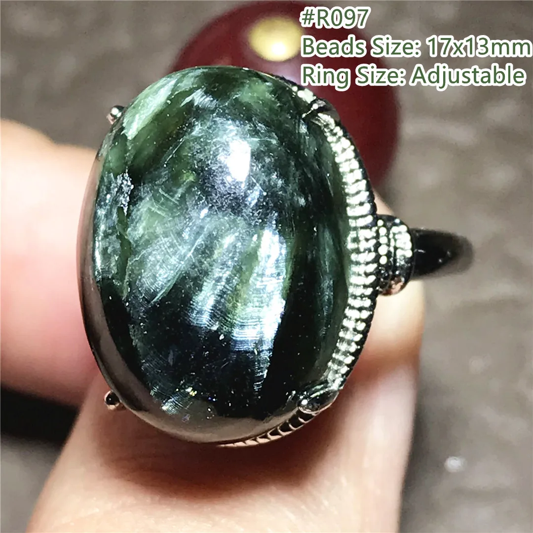 Natural Green Seraphinite Ring Jewelry For Woman Lady Man Gift Silver Healing Wealth Crystal Beads Stone Adjustable Ring AAAAA Drop Shipping