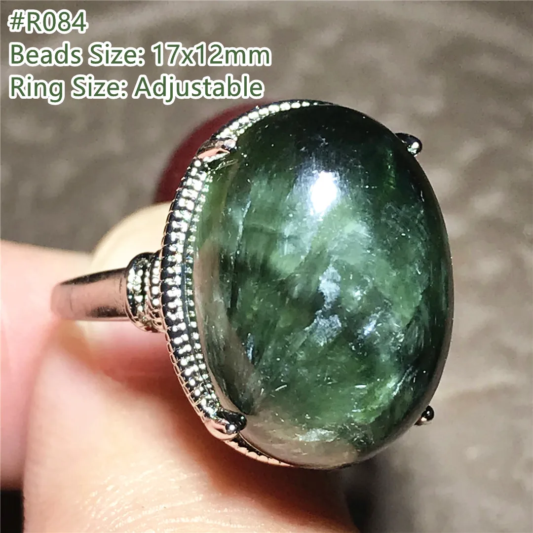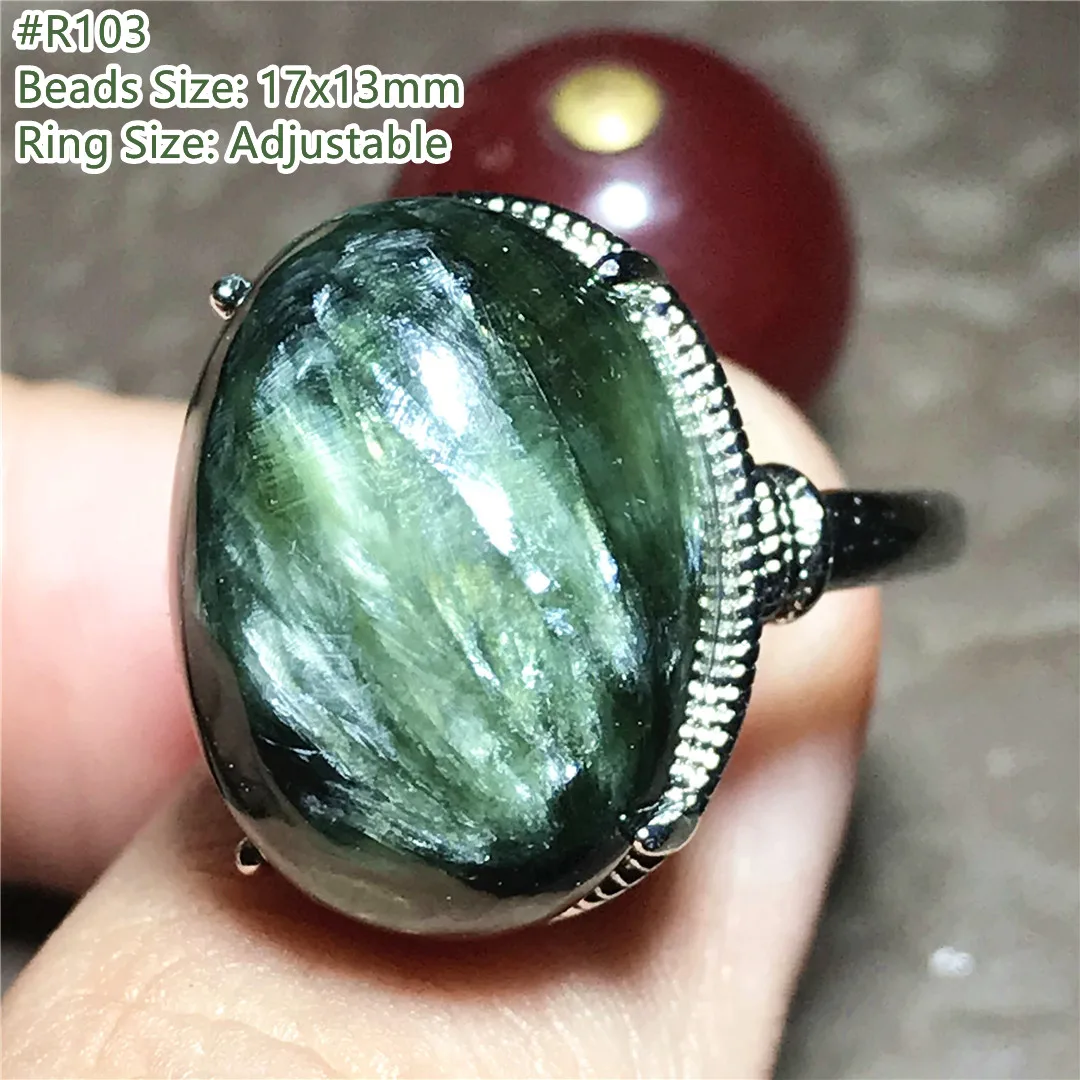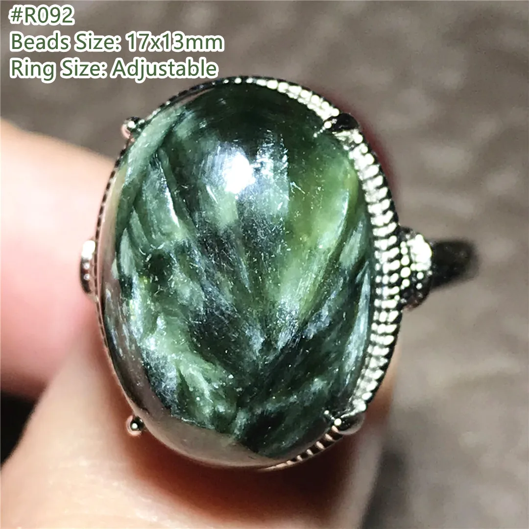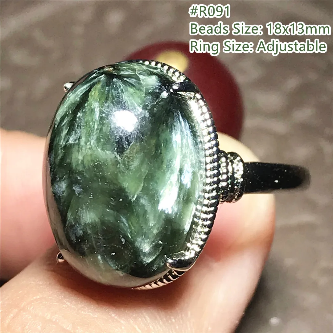 Natural Green Seraphinite Ring Jewelry For Woman Lady Man Gift Silver Healing Wealth Crystal Beads Stone Adjustable Ring AAAAA Drop Shipping