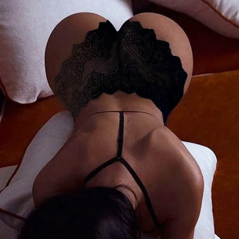 Женские стринги средней посадки темно синего цвета украшенное оборками из