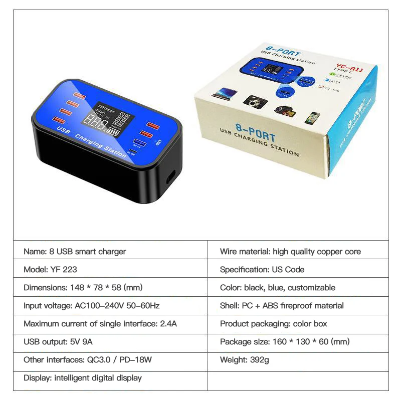 Поддержка быстрой зарядки мобильных телефонов и планшетов, интеллектуальная Регулировка тока в соответствии с устройством, а общая выходная мощность-50 Вт