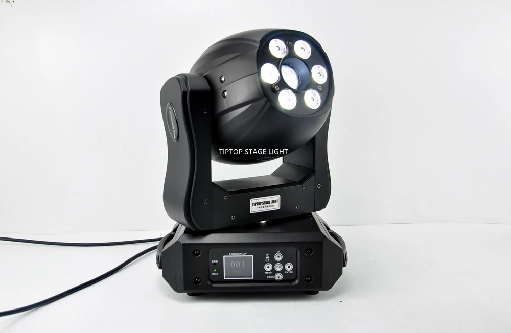 * Светильник источник света: 1 шт. 120 Вт белый светодиодный + 6pcs10W RGBW4IN1 светодиодный * Потребляемая мощность: 160 Вт * (Красный, зеленый, синий) Угол пучка: 13,5 градусов * Электронный диммер 0 ~ 100% * Движение сковороды: 540 ° * Движение наклона: 270 ° * Разрешение панорамирования/наклона: 8-16 бит * Призма вращается 5 граней призмы * Фокус: линейный фокус от близкого к дальнему * 1 Фиксированное колесо gobo: 8gobos plus пустой * 1 поворачиваемое колесо gobo: 6gobos plus пустой, gobo вращающийся на 360 ° * 1 цветное колесо: 7 цветов плюс белый * Стробоскоп: 0-16 Гц, от медленного до быстрого, регулировка * Режим управления: авто, звук активный, DMX512 * DMX канал: 16 каналов * ЖК-дисплей дисплей * Вариант панорамирования/наклона * Сброс в заводские настройки. * Вентилятор охлаждения/Принудительная конвекция Упаковочный лист для каждого блока: 1 х светодиодный светильник с подвижной головкой 1 х Кабель питания 1 х кабель DMX 1 x Омега-зажим Руководство пользователя-1 шт.; * Стандартная упаковка-картонная коробка с пеной. Чехол для полёта является дополнительным.