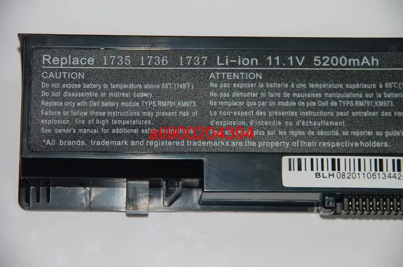 Альтернативный аккумулятор для ноутбука Dell Studio 1735 1737 RM791 MT342 453-10044 451-10660 312-0711 5200 мА*ч 6 элементов