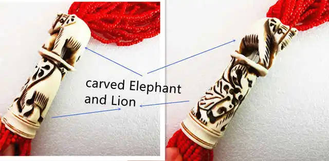 ----- Кости яка Резные Слоны Лев племенные ожерелья с красными мини бусинами