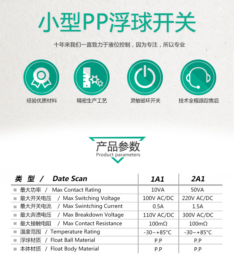 Поплавковый выключатель ПП регулятор уровня жидкости антикоррозийный для