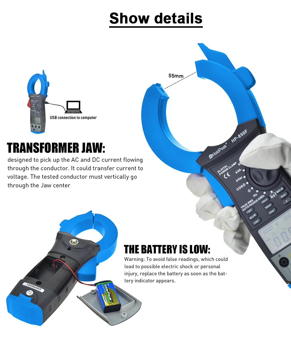 Мощность метров HP-850F интеллигентая (ый) Цифровой трехфазный Мощность зажим данные таблицы Интерфейс USB зажим Тип Мощность измерительный инструмент