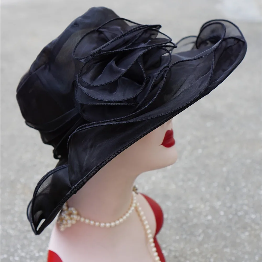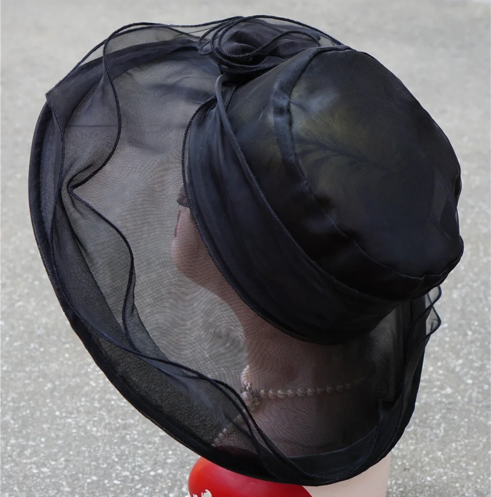 Женская соломенная шляпа HT3182 летняя пляжная с широкими полями и черным бантом