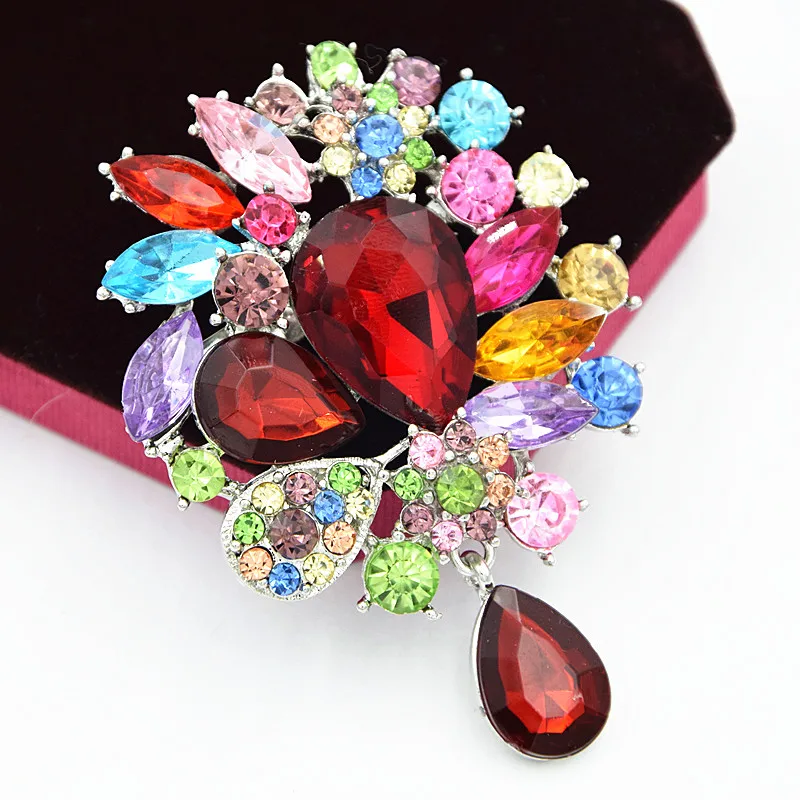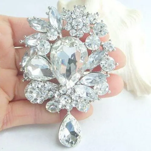 Бесплатная доставка (60 шт./лот) Посеребренная огромная стеклянная Хрустальная брошь в форме капли