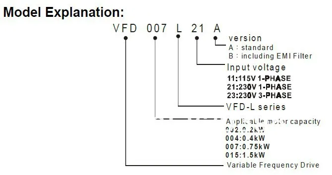 DELTA моторный накопитель переменного тока инвертора привода VFD007L21A VFD-L серии 1HP 1 фаза 0.7KW 220 V Новый |