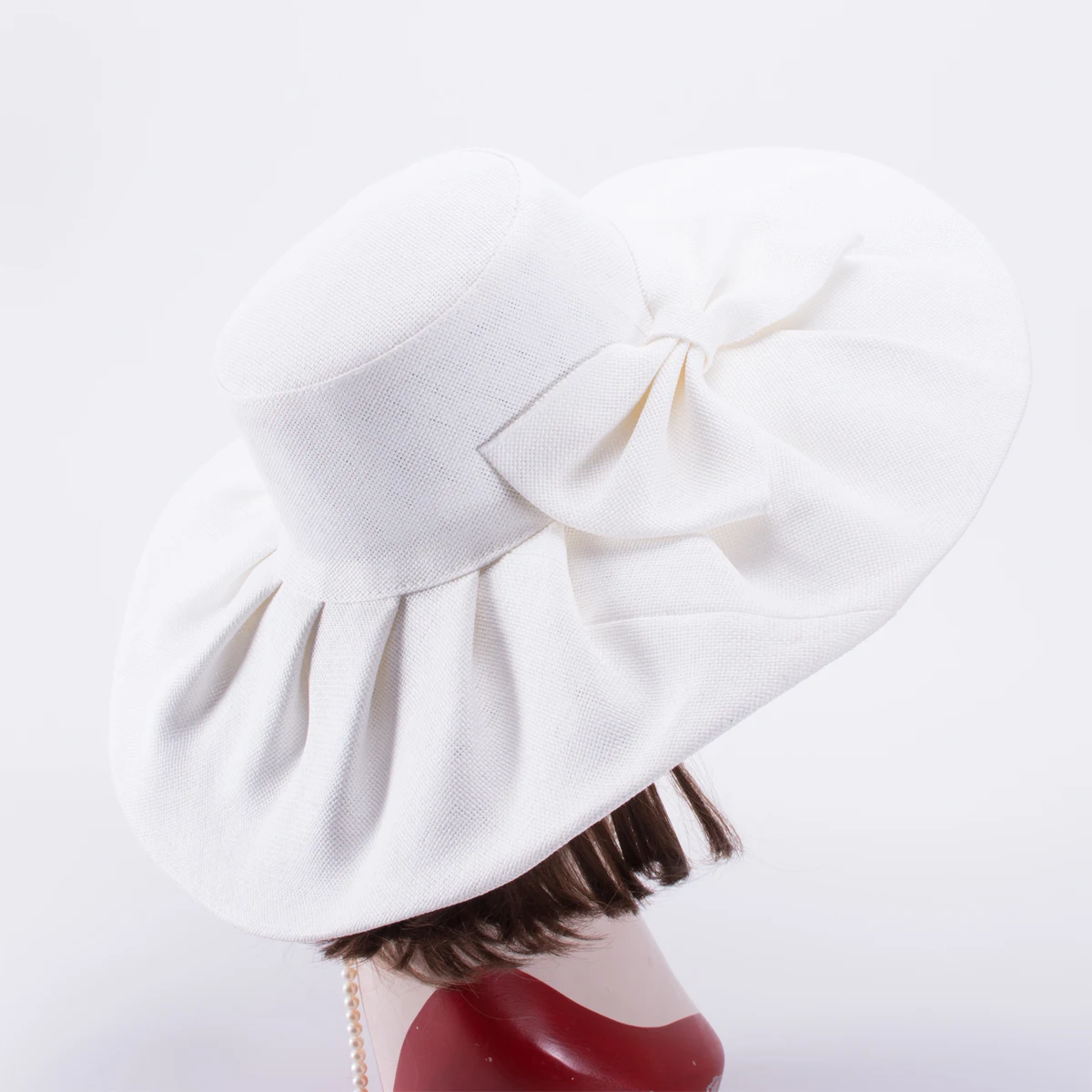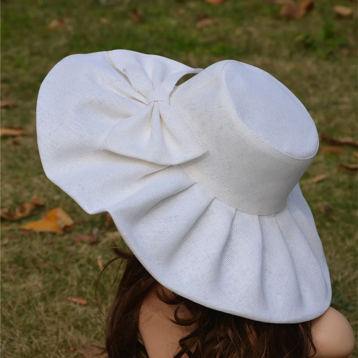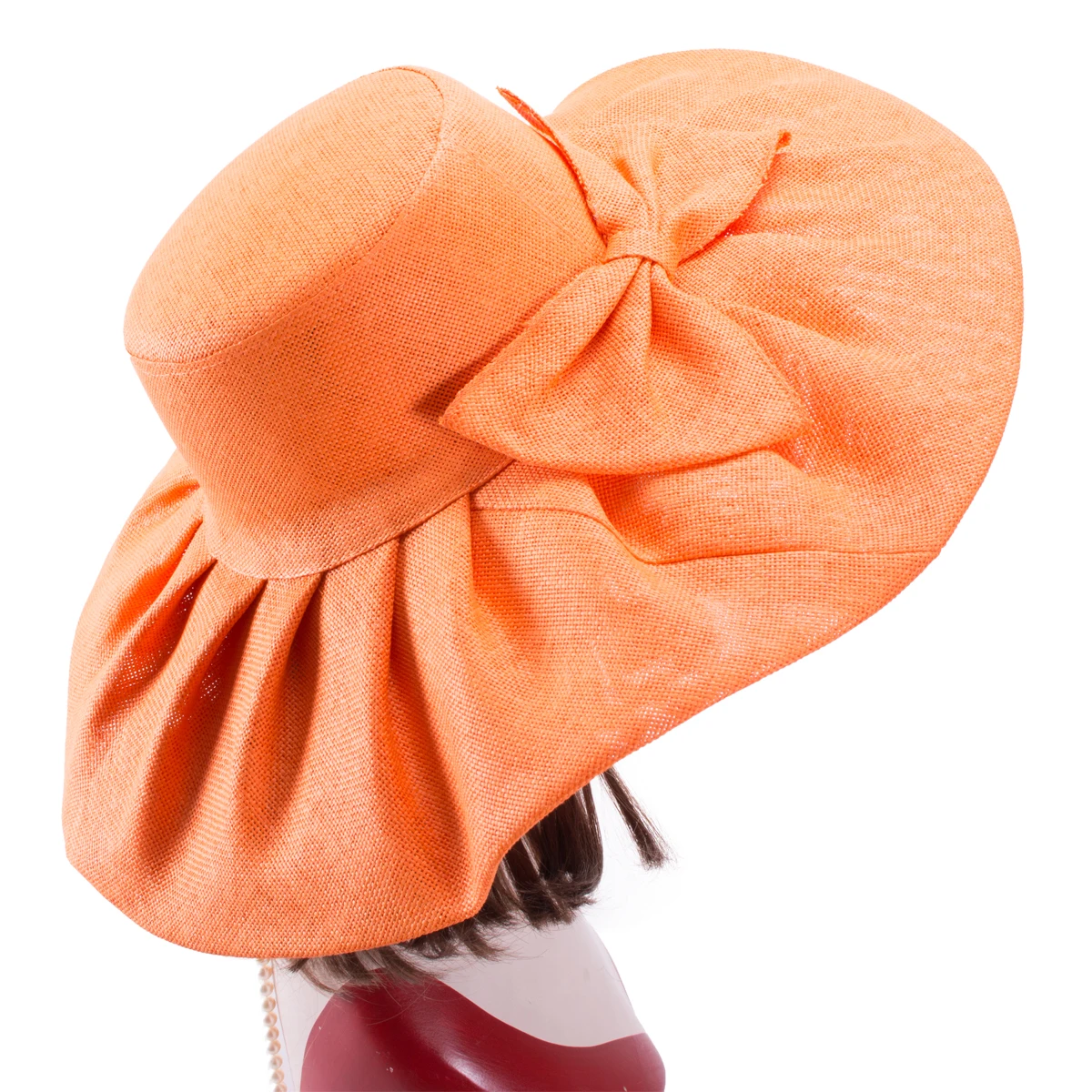 Есть большой бант, украшенный необычными складками вокруг шляпы, что делает ее похожей на естественную. Его можно легко носить с собой.