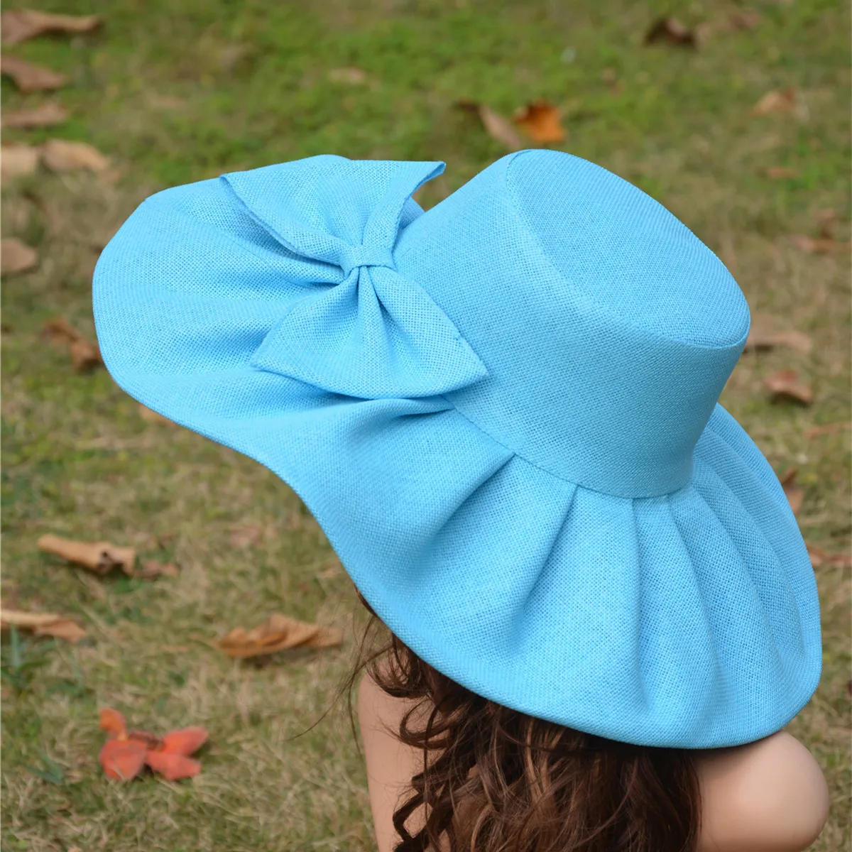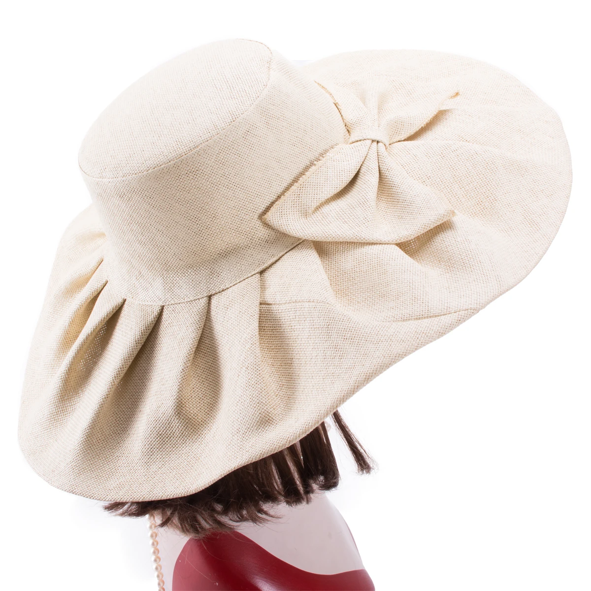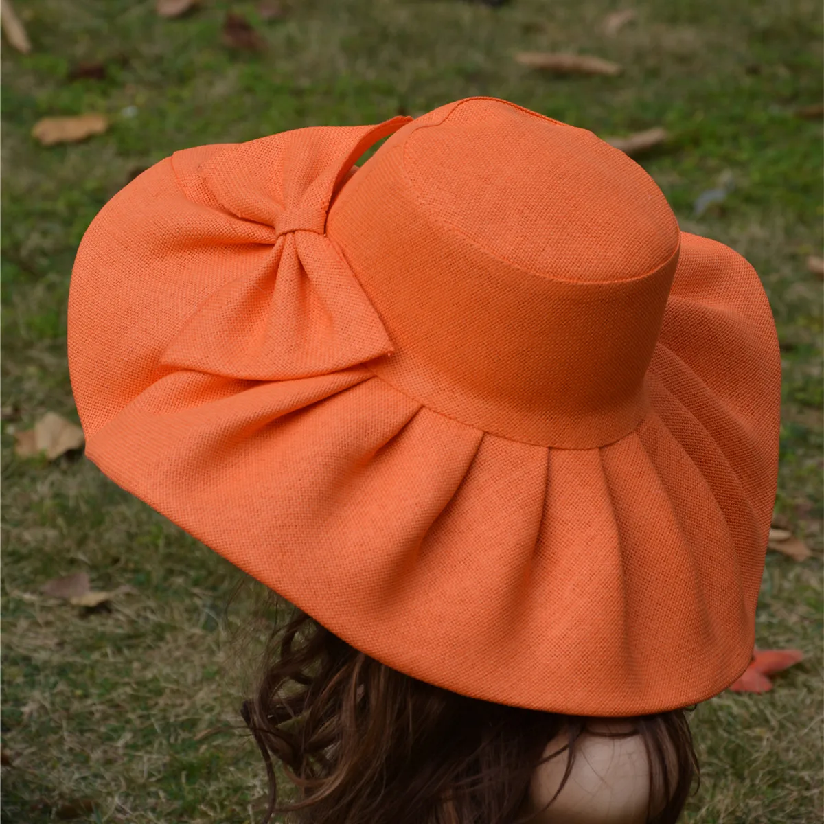 Есть большой бант, украшенный необычными складками вокруг шляпы, что делает ее похожей на естественную. Его можно легко носить с собой.
